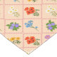A charming wildflower pattern featuring delicate blooms arranged in a playful harlequin lattice on a warm blush background.