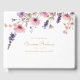 Elegant, White, Pink, Purple Wildflower, "In Loving Memory" celebration of life, funeral guest book, lovely handwriting font and wildflowers.