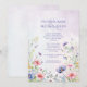 Beautiful lavender, blue and pink watercolor background with soft pastel wildflowers surrounding beautiful fonts were used to create this lovely wedding invitation. Perfect for any season wedding.