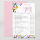 Shoe Game for Wedding or Couples Shower, personalised with the name of the bride and groom. The design has a floral border of wild flowers in pink lilac yellow and blue with pretty pink lettering. The design has 20 questions which you are welcome to edit if you wish.