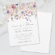 The top of the invitation features a delicate arrangement of watercolor wildflowers and greenery. The colour palette includes soft blush pinks, dusty rose, lilac, lavender, violet, and fresh greens for a dreamy, romantic look.