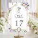 Elegant wedding table number featuring beautiful flowers and modern typography.