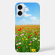 A vast meadow bursting with colourful wildflowers like poppies, cornflowers, daisies, and buttercups, beneath a bright blue sky with soft clouds. This vibrant spring scene brings freshness and joy, perfect for lively phone case designs.
