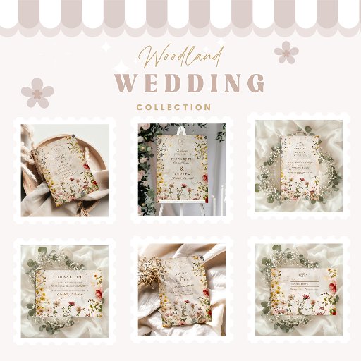 Bring your celebration to life with this romantic wildflower wedding design, inspired by an autumn meadow in full bloom. With vintage botanicals, earthy textures, and a soft watercolor palette, it sets the perfect tone for a boho-chic or garden-inspired ceremony. Personalise with your names and details for a keepsake your guests will adore.