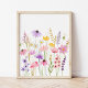 This sweet print set features my hand painted watercolor wildflowers in shades of pink, purple with touches of gold.