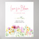 Love is in Bloom Flower Bar sign for your wildflower bridal shower. This watercolor botanical design has a pretty border of wild flowers in pink orange and yellow. An elegant modern floral with casual elegant calligraphy. Perfect for rustic country, cottagecore or bohemian, floral, natural garden theme etc. Please browse my store, Wildflower Meadow collection, for invitations and matching items.