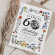 An elegant "60th Birthday" party invitation design with personalised photo, modern typography and wildflower motif.
