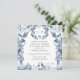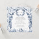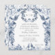 BLUE AND WHITE CHINOISERIE WEDDING INVITATION SQUARE FORMAT | Elegant wildflower border floral in Delft navy blue, light blue and white flowers with leaf foliage greenery. The reverse side has an all over pattern and added butterflies. Shown in white, but you can add any colour background you desire behind the artwork. A complete set of products are available for purchase in the collection. Created by internationally licensed artist and designer, Audrey Jeanne Roberts ©.