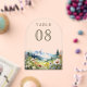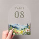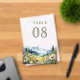 Amaze your guests with this elegant wedding table number featuring beautiful mountains and wildflowers.