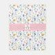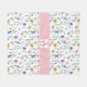 Personalised Elegant Wildflower Monogram Fleece Blanket. Add a soft, cosy touch to your home with this elegant fleece blanket featuring a delicate wildflower pattern in pastel shades of pink, purple, blue, yellow, and green on a clean white background. The design is printed on one side and includes a pink bar across the centre with a white and grey monogram for a graceful, personalised accent.