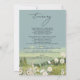 A beautiful watercolor wildflower and mountain landscape wedding design. A unique design that uses white watercolor wildflower botanicals and a watercolor mountain landscape in the background. A modern wild floral design with lakeside mountains and rivers. An elegant wedding Itinerary program card design with modern elements. Matching wedding invitations and other stationery items are also available.