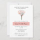 A soft pink and coral flower bouquet sits atop this baby shower invitation. Personalise the card with your own wording. See the other items in the collection to create a cohesive party.