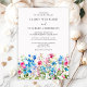 This beautiful and elegant wedding invitation features watercolor flowers in pink and blue. The text combines handwritten script and serif fonts for a stylish and modern look. This is perfect for a spring or summer rustic wedding.