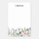 Jot down your notes in style with these pretty personalized post-it notes. Featuring a border of watercolor wildflowers in greens, pinks and blues. Make it yours with your own name or message.