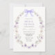 Wedding Shower invitation featuring a frame of watercolor wildflowers and a pretty purple bow. Customise with your information for the bride to be. Click "click to customise further" to change the font style, size or colour.