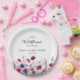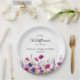 Customer-specific, cute, wildflower, purple-pink, baby shower white paper plates with your name & date.