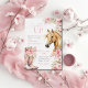 Saddle up for a birthday celebration that's sure to be a galloping good time with our enchanting Equestrian-themed Children's Birthday Party Invitation! Featuring a stunning watercolor horse, adorable cowgirl boots, and surrounded by a bouquet of delicate pink flowers, this invitation captures the spirit of adventure and fun. Perfect for little horse lovers and aspiring cowboys and cowgirls, it sets the stage for a memorable birthday bash filled with pony rides, games, and plenty of laughter. Whether you're hosting a barnyard adventure or a western-style hoedown, this invitation is the perfect way to lasso in your guests for a day of equestrian excitement.