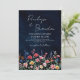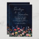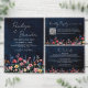 Wildflower Rustic QR Code Floral Navy Wedding Invitation