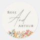 This whimsical minimalist script wedding classic round sticker is perfect for your classic simple black and white minimal modern boho wedding. The design features elegant, delicate, and romantic handwritten calligraphy lettering with formal shabby chic typography. The look will go well with any wedding season: spring, summer, fall, or winter! The product is editable and has plenty of blank space, so you can add your own graphics or pictures if you want to customise it! Please feel free to reach out with any questions regarding the product's design; we are happy to help!