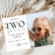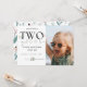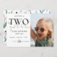 Second birthday photo invitation with whimsical flowers. "TWO good to to be true."