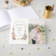 Graceful gold arch border with elegant scrolls embellished with romantic boho chic watercolor pastel wildflowers in pale blue, pink and yellow. Includes text fields, photo template and monogram on back. This charming collection is the perfect complement to your Spring, Summer or garden-themed wedding.