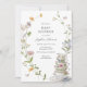 Wildflower themed baby shower invitation features a watercolor frame of blooming wildflowers and butterflies with a stack of teacups. Personalise with your information or click "Click to customise further" to edit font styles, size and colours.