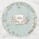 This confetti feature a sweet tea cup in the centre surrounded by a delicate wreath of wildflowers. The background is light robin's egg blue. Colours include rose red, sage green, pale blue, orange, pink and white.
