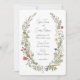 Wedding invitation featuring a watercolor wreath of vintage inspired wildflowers. Customise with your information.