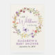 An elegant light cream acrylic welcome sign for your baby girl shower featuring "a little wildflower is on her way" written in modern typography and a stylish lavender script, and a boho-inspired watercolor wreath of purple, pink, peach and yellow wildflowers and a purple butterfly. Personalise the mother's name and shower date.