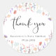 Elegant gender-neutral baby shower sticker for your party favours and thank you cards featuring watercolors of delicate wildflowers and "thank you" in a stylish script. Personalise with the name of the mummy-to-be and shower date.