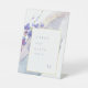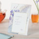 This elegant wedding collection uses a striking colour palette including periwinkle, plum and soft blues to create matching stationery and party supplies for your special day. Watercolor florals and sparkling paint strokes provide eye-catching backgrounds. Handwritten script paired with a classic serif font lend a modern touch. The wedding pedestal sign shown here provides ample space for your choice of text, your initials and wedding date. Search ID954 to see other pieces and colour choices for this set.