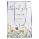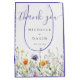This design features a border of vibrant wildflowers in shades of red, yellow, green, teal, and blue. Perfect for casual summer weddings.