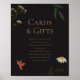 A thoughtful and cheery wedding sign for cards and gifts with bold retro typography in white on a bright yellow background with a little poem that says "Thank you for the gifts, so kind and true