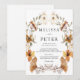 This stylish & elegant boho arch wedding invitation features gorgeous hand-painted watercolor wildflowers arranged as a lovely frame.