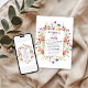 Share your special day with this vibrant wildflower wedding invitation. The design features a colourful array of hand-painted blooms framing your wedding details in a modern rectangular layout. Ideal for garden parties, boho celebrations, or rustic countryside weddings. Personalise with your names, date, venue, and more for a unique invite.