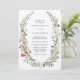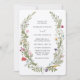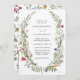 Wedding invitation featuring a watercolor wreath of vintage inspired wildflowers. Customise with your information.