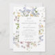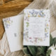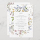 A pretty wedding invitation that features watercolor wildflower graphics in soft blue, pink, lilac, yellow and green tones and a modern font. This stylish invitation is easy to edit and is perfect for a whimsical wildflower themed wedding. Pair with anything from the ELODIE collection for a cohesive look.