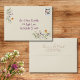 Add a touch of floral elegance to your wedding stationery with this personalised return address envelope. Featuring delicate watercolor wildflowers on both the front and back, this envelope pairs beautifully with garden, rustic, or country-inspired invitations. Customise with your names and return address to make your mailings feel as thoughtful as the celebration to come.