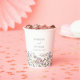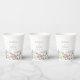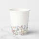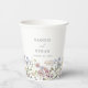 This wildflower paper cup features watercolor floral graphics, a blush, blue, lilac, yellow and green colour palette and a modern font. It is perfect for a whimsical wildflower themed wedding and you can pair it with anything in the ELODIE collection for a cohesive look.