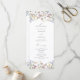 A wildflower wedding program that features pretty watercolor floral graphics in soft blue, pink, yellow and green tones and a modern font. Perfect for a spring or summer wedding and you can pair it with anything in the ELODIE collection for a cohesive look.