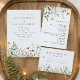 This design features a watercolor border of wildflowers in shades of gold, red, blue, and green. Perfect for spring and summer weddings.
