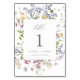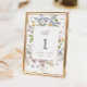 A stylish wedding table number that features pretty wildflower graphics in soft blue, pink, yellow, lilac and green tones and a modern font. It can be personalised with the names of the couple and their wedding date. Pair with anything in the ELODIE collection for a cohesive look. NOTE: you will need to order each table number separately.