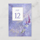 This elegant wedding collection uses a striking colour palette including periwinkle, plum and soft blues to create matching stationery and party supplies for your special day. Watercolor florals and sparkling paint strokes provide eye-catching backgrounds. Handwritten script paired with a classic serif font lend a modern touch. The wedding 'Table Number' card shown here provides a sparkling background texture and a template to easily add your own number, initials and wedding date. Search ID954 to see other pieces and colour choices for this set.