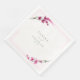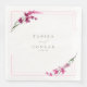 This elegant wedding collection uses a striking colour palette, including fuchsia fedora, lime green and cotton candy pink, to create matching stationery and party supplies for your special day. Watercolor florals and sparkling paint strokes provide eye-catching backgrounds. Handwritten script paired with a classic serif font lend a modern touch. The wedding paper napkin shown here with a floral border, provides a template to easily add your own names and wedding date. Search ID954 to see other pieces and colour choices for this set.