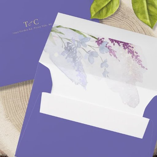 This elegant wedding collection uses a striking colour palette including periwinkle, plum and soft blues to create matching stationery and party supplies for your special day. Watercolor florals and sparkling paint strokes provide eye-catching backgrounds. Handwritten script paired with a classic serif font lend a modern touch. The wedding 'RSVP' card shown here provides a template to easily add your own request wording. Search ID954 to see other pieces and colour choices for this set.