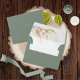 This elegant wedding collection uses a striking colour palette, including gold flake, burnt orange and sage green, to create matching stationery and party supplies for your special day. Watercolor florals and sparkling paint strokes provide eye-catching backgrounds. Handwritten script paired with a classic serif font lend a modern touch. The coordinating envelope shown here features an optional sage green exterior and beautiful wildflower accent for the interior. Search ID954 to see other pieces and colour choices for this set.