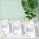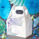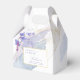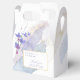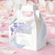 This elegant wedding collection uses a striking colour palette including periwinkle, plum and soft blues to create matching stationery and party supplies for your special day. Watercolor florals and sparkling paint strokes provide eye-catching backgrounds. Handwritten script paired with a classic serif font lend a modern touch. The wedding favour box shown here provides a template to easily add your own names and thank you message. Search ID954 to see other pieces and colour choices for this set.
