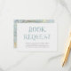This baby shower book request card features a soft blue whimsical typography and is the perfect way to let your guests know to bring a book. The back of the invitation is a soft blue with wildflowers and branches.