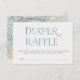 This baby shower diaper raffle card features soft blue whimsical typography. The back of the invitation is a soft blue with wildflowers and branches.