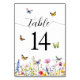 Wildflowers and Butterflies Wedding Table Number